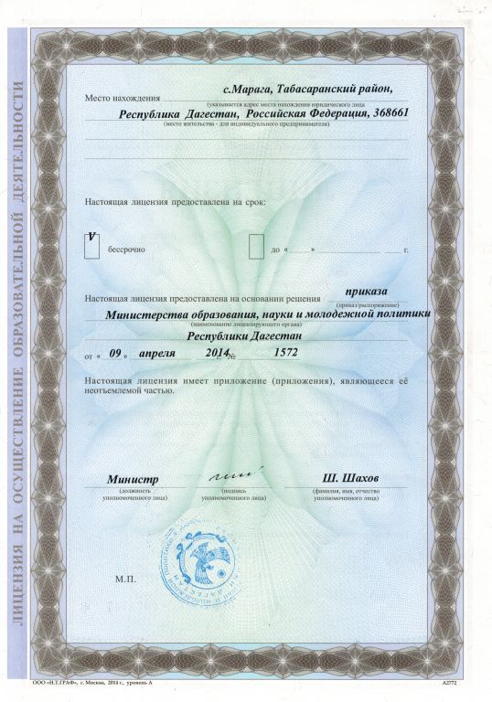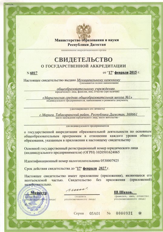 Адрес местонахождения образовательной организации* 368661. Республика Дагестан,Табасаранский район, с.Марага, ул. Джурдакская 65