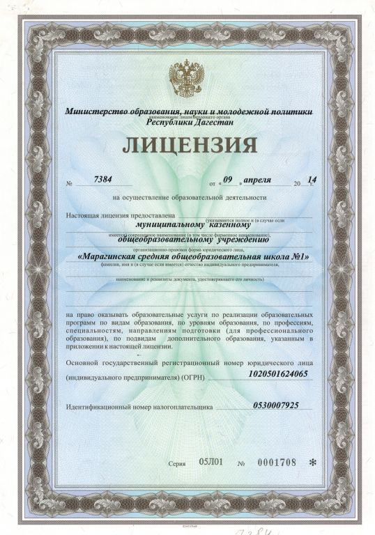 Полное наименование образовательной организации* Муниципальное казенное общеобразовательное учреждение "Марагинская средняя общеобразовательная школа №1"