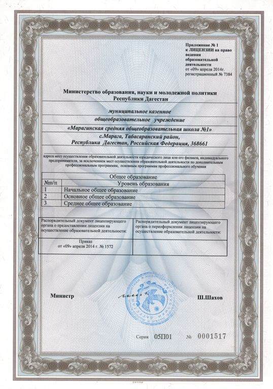 Сокращенное наименование образовательной организации* МКОУ "Марагинская СОШ №1"